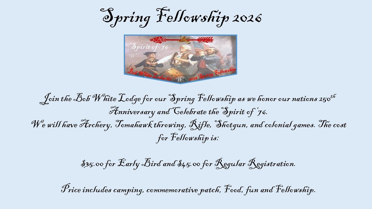 2026 OA Spring Induction Weekend – February 20-22 at Knox Scout Reservation Mark your calendars and prepare for a weekend of cheerful service,